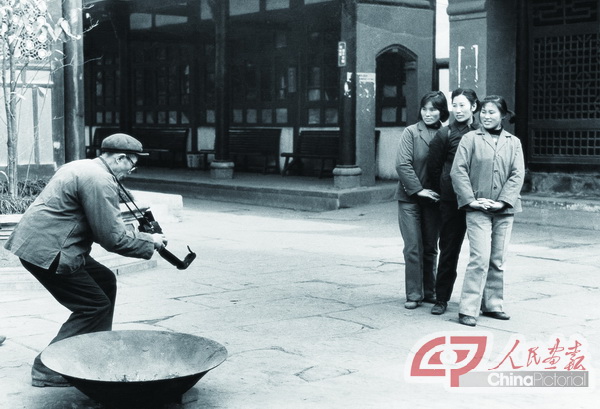 1983年12月,四川成都文殊院里的旅游者在拍照留念。摄影 李丹