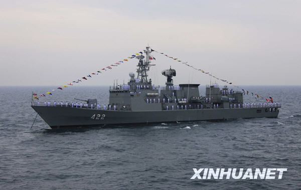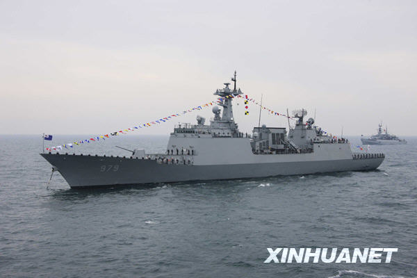 4月23日,韩国“姜邯赞”号导弹驱逐舰参加海上阅兵式。