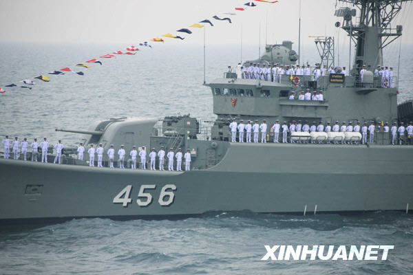 4月23日,泰国“达信”号导弹护卫舰参加海上阅兵式。新华社记者查春明摄