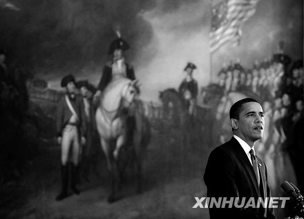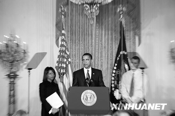 这是3月30日,奥巴马在白宫准备就美国汽车业形势发表讲话。(照片为彩色转黑白)新华社记者张岩摄