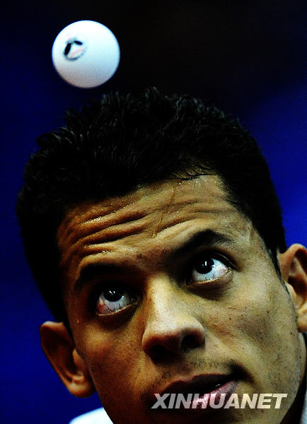 4月29日,萨尔瓦多选手多纳多在男单预赛中发球。当日,第50届世界乒乓球锦标赛预赛在横滨体育馆继续进行。新华社记者徐家军摄