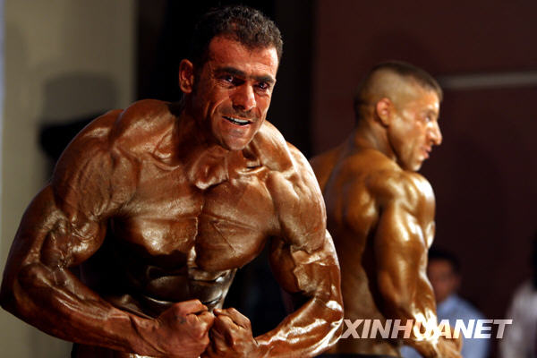 6月2日,一名健美运动员在赛前热身。当日,一场健美比赛在阿富汗首都喀布尔举行,阿富汗国家健美队也将在本次比赛中挑选队员。新华社发(扎比摄)