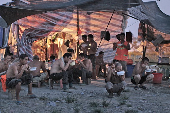 ??? 高速铁路工地没有专门的自来水和淋浴卫生间,更没有冷暖设备,日常洗漱都在工棚的自打井水边上。饮用自来水要到1公里外去拉。