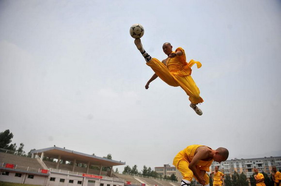 2010年7月7日,中国河南登封。受南非世界杯的影响,几个武校学生足球迷成立了“少林足球队”。