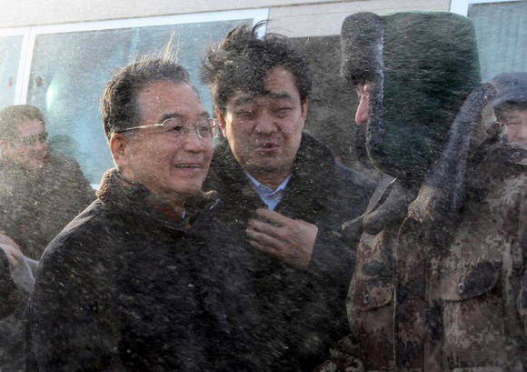 1月24日,温家宝总理顶着7级大风雪、冒着零下30摄氏度的严寒,来到塔城地区托里县多拉特乡冬古列克村(老风口区),看望居住在这里的村民。