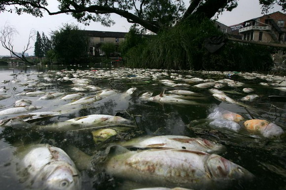2010年8月11日,温州瓯海区潘桥镇林桥头村附近的塘河支流,一养殖场在河道放养的上万条鲢鱼一夜之间集体死亡,漂浮在河面上的鲢鱼堆积在一起。对于死因,众说纷纭。有村民反映,这一带有不少工厂,怀疑是“水质被污染了”,也有人认为是天气闷热导致,无论何种原因,如此规模的鲢鱼集体死亡,实属少见。事件发生后,环保部门介入调查。