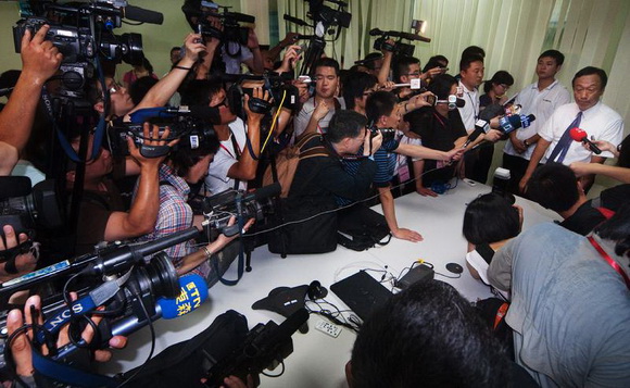 5月26日,11:30,媒体蜂拥围堵,郭台铭难以招架。