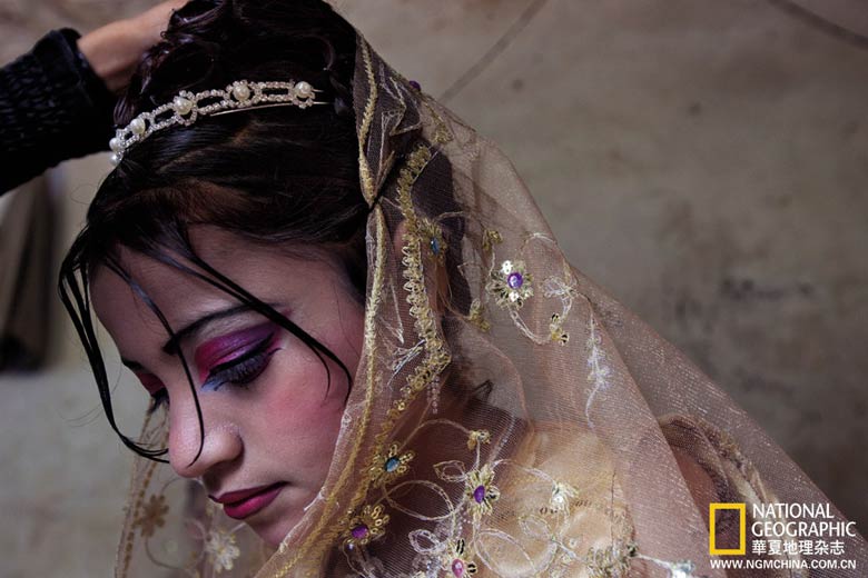 她今年11岁,今天是她大喜的日子。在也门北部的哈杰省,希达芭第一次化妆,披上手工制作的婚纱。