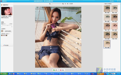 肌肤美白,不仅是电视广告里宣传的,打造漂亮的人像照片一样少不了它,用户可以通过右边边栏处的9中肤色“一键美白”,同时也可以用笔刷刷出只有人像部分明亮通透的图片来。下图就是用笔刷后的效果。