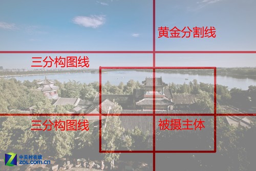 三分构图法是比较常规,但也被广泛应用的构图方式了。拍摄过程中我们可以开启辅助构图线进行拍摄,或者根据经验大致推算出一个“黄金分割点”的位置进行拍摄。