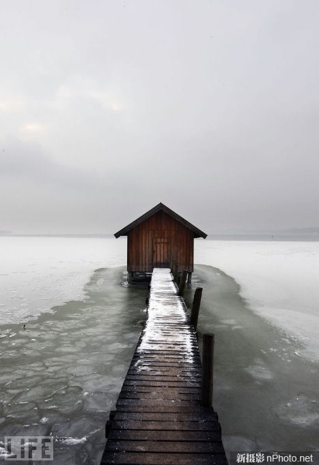 摄影师Johannes Simon 2010年1月在德国拍到这张照片。“这张照片构图的想法,”Stalman说,“非常简单且有效。摄影师将画面一分为二,将地平线置于画面正中,利用小路形成的直线,将观众的视线引至画面中唯一的小屋?!?/p>