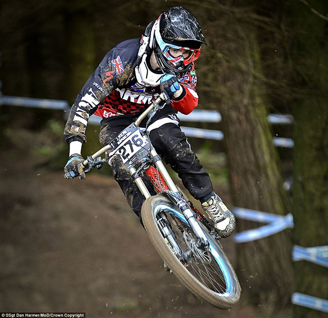 差距,摄影师:中士Dan Harmer,该照片获得了运动与竞技专业组的亚军。在Bringewood第5轮的下坡路段,来自皇家电子机械工程师的中士Matt Forster已经被皇家后勤军团的参赛选手落下一大截了。